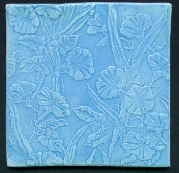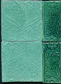 Above tiles are taken from vintage fabrics and pressed from carved linoleum these patterns repeat |